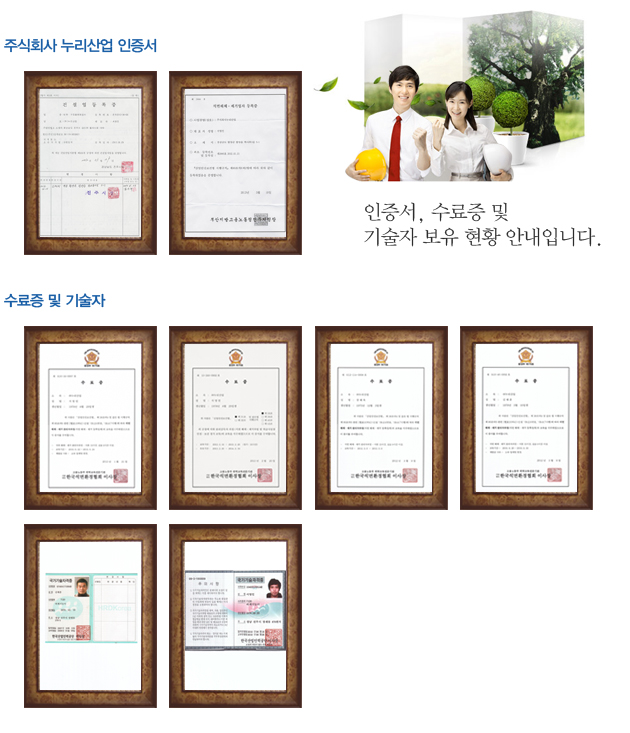 (주)누리삽업 증명서 및 기술자 현황을 알려드립니다.